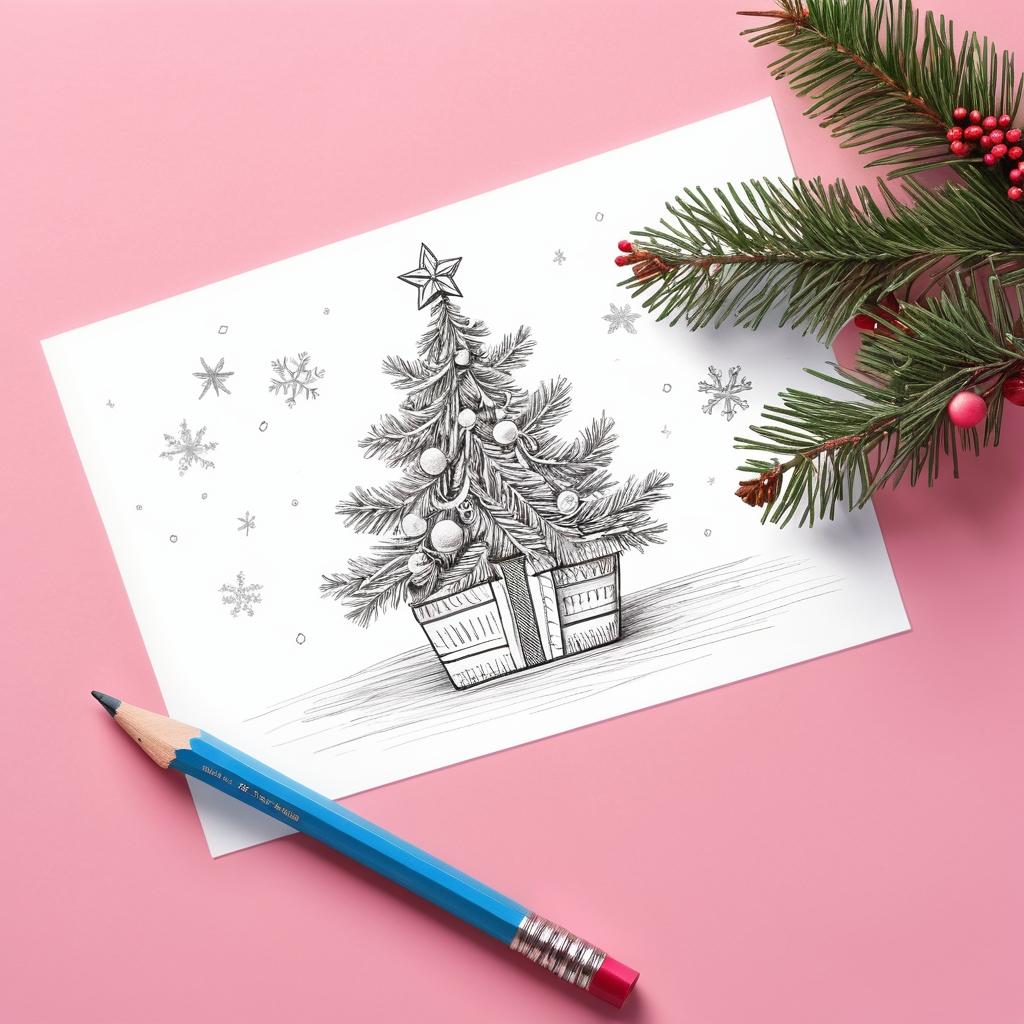 这幅作品以其简单的线条和鲜艳的背景色传达出一种纯真的童趣。通过在粉色纸上用铅笔勾勒出圣诞树、礼物和小花,这幅画捕捉到了节日的欢乐氛围。艺术家选择了极简的构图,可能意在突出童年时光的简单与快乐。为了进一步提升这幅作品,建议在圣诞树上添加一些装饰细节,如彩灯和雪花,使画面更有层次感和节日气氛。同时,在背景中引入柔和的光影效果,可以增强整体的视觉吸引力。通过使用不同色调的铅笔来增加阴影和深度,作品可以在视觉上更具冲击力。这些改进不仅能丰富作品的表达,也能更好地唤起观者对节日的温暖回忆。