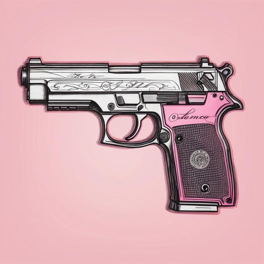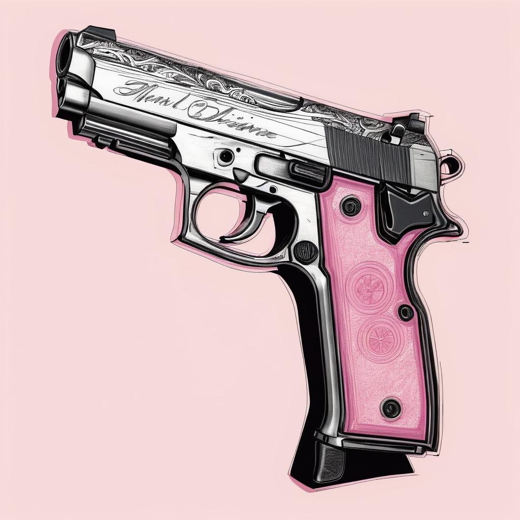 这件作品通过简单的线条和色彩对比,营造了一种视觉和情感上的冲突。粉色通常与柔和、温暖的情感联系在一起,而手枪则象征着暴力和威胁。这种反差可能在探讨社会暴力与日常生活之间的关系。为了增强这种表达,可以考虑在背景中加入更多细节,比如使用渐变色或纹理,增加画面的深度和层次感。此外,可以在手枪的周围添加隐喻性的符号或图案,以进一步阐述主题。