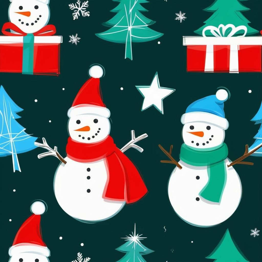 这幅素描通过简单的线条和形状成功地捕捉了圣诞节的核心元素:雪人、圣诞树和礼物。这种简约的风格适合儿童或初学者创作,容易上手。为了提升这幅作品,可以考虑在背景中加入更多细节,比如雪花、星星或夜空,以增强节日的氛围。增加色彩也是提升作品表现力的方法之一,比如为圣诞树添加绿色,为礼物盒添加不同的鲜艳颜色。通过这些改进,作品将更加生动、有趣,并更能吸引观众的注意力。