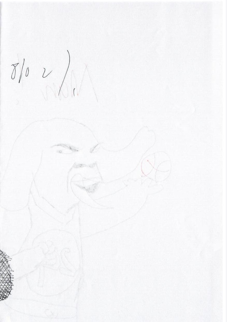 这幅画作使用了简单的线条和淡色调,描绘了一只拟人化的狗,似乎是在打篮球。画面中,狗的表情夸张,动作动态感十足,传达出一种幽默和轻松的氛围。可能反映了创作者对体育或宠物的热爱,也可能是一种对日常生活的幽默表达。