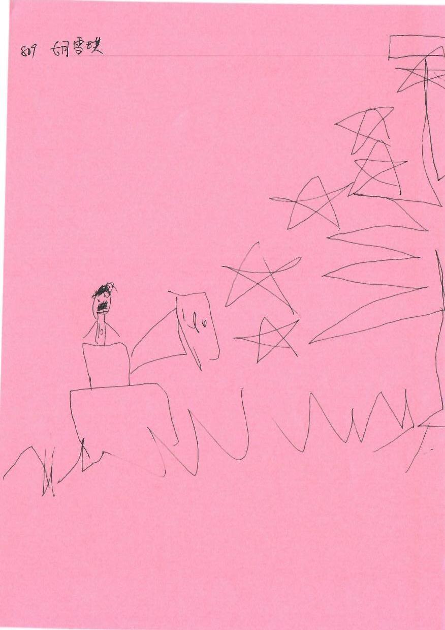 在这幅充满童趣的作品中,我们看到了一种纯粹的表达方式。小朋友用简单的线条和形状构建了一个想象中的世界,粉色的背景为整个画面增添了一份温暖与柔和的基调。这种天真无邪的画作展现了孩子们看待世界的独特视角,他们无需复杂的技巧,只需凭借创造力和想象力就能创造出让人会心一笑的图景。作品中,骑在马上的人物和背景中的星星或树木都以最简单的形式呈现,这种简单反而让观者能更直接地感受到画中的故事。为了进一步提升这幅作品,可以考虑在色彩运用上进行探索。通过添加对比色,主角和背景会更加突出,增强画面的层次感。此外,通过增加细节,如星星的闪烁效果或是树木的层次感,整个画面可以变得更加生动。这种做法不仅能丰富视觉效果,还能激发孩子们继续创作的热情。