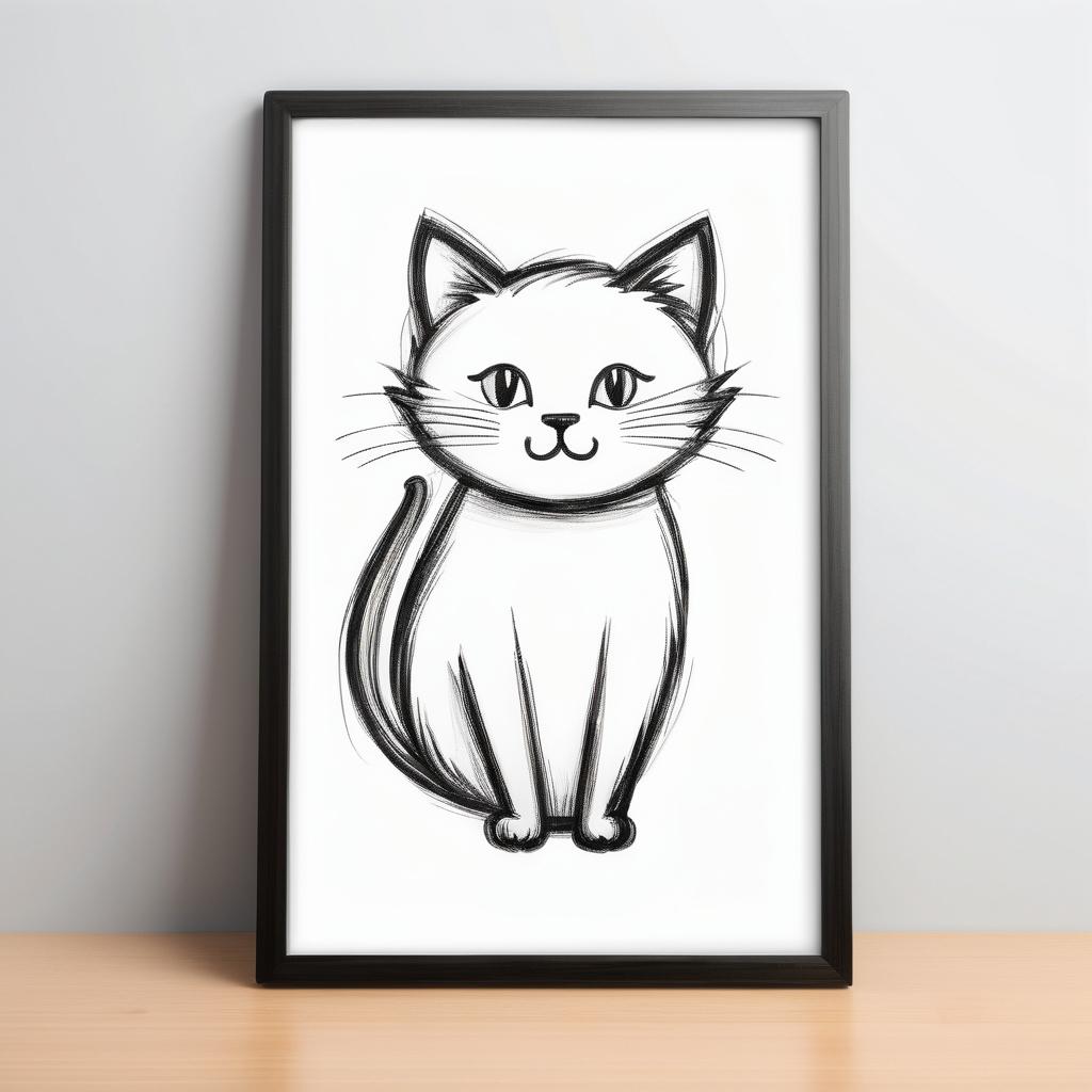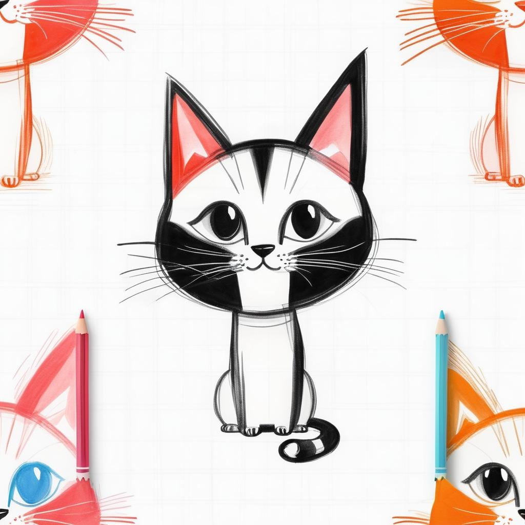 这幅作品的简约风格和卡通化的猫咪形象非常适合儿童启蒙艺术教育。可以考虑增加一些背景元素,丰富画面的层次感,比如加入一些简单的几何图形或者轻柔的色彩过渡,使整个画面更加生动有趣。同时,保持猫咪的简约设计,突出其核心的可爱和幽默感。此外,可以尝试使用不同的材质,如蜡笔或水彩,来增加作品的视觉多样性,使其更具吸引力。通过这些改进,作品不仅仅是简单的涂鸦,而是一个充满童趣和艺术魅力的完整作品。