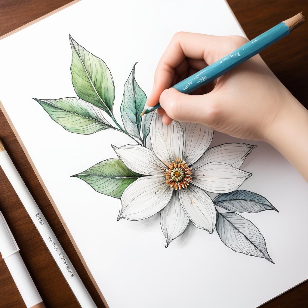 然而,简单并不意味着单调。为了让这幅画更加生动,可以考虑在背景中加入柔和的色彩。这不仅能增加画面的层次感,还能让观者在欣赏时获得更多的视觉享受。对于花朵本身,可以采用水彩或淡彩技法为其赋予色彩,让花和叶子更加富有生命力。