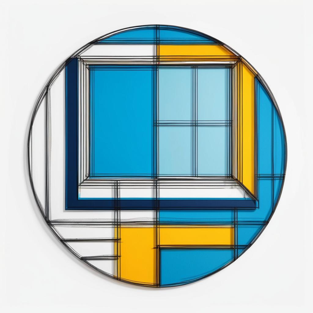 这幅作品使用了简单的线条和几何形状,可能描绘了一个抽象的面部或建筑元素。弯曲的线条可能代表眉毛或屋顶,而方形和圆形可能是眼睛或窗户。整体构图简洁,给人一种初始的设计感。创作者可能在探索简单形状的组合和对称性。
