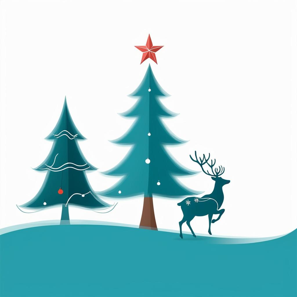 这幅作品是用简单的线条描绘了一棵圣诞树和一头麋鹿,整体风格简约而充满童趣。线条自由流畅,表现出一种轻松愉悦的氛围。作品的空白背景突出显示了主要元素,使观者的注意力集中在圣诞树和麋鹿上,传达出一种冬季节日的温暖感觉。