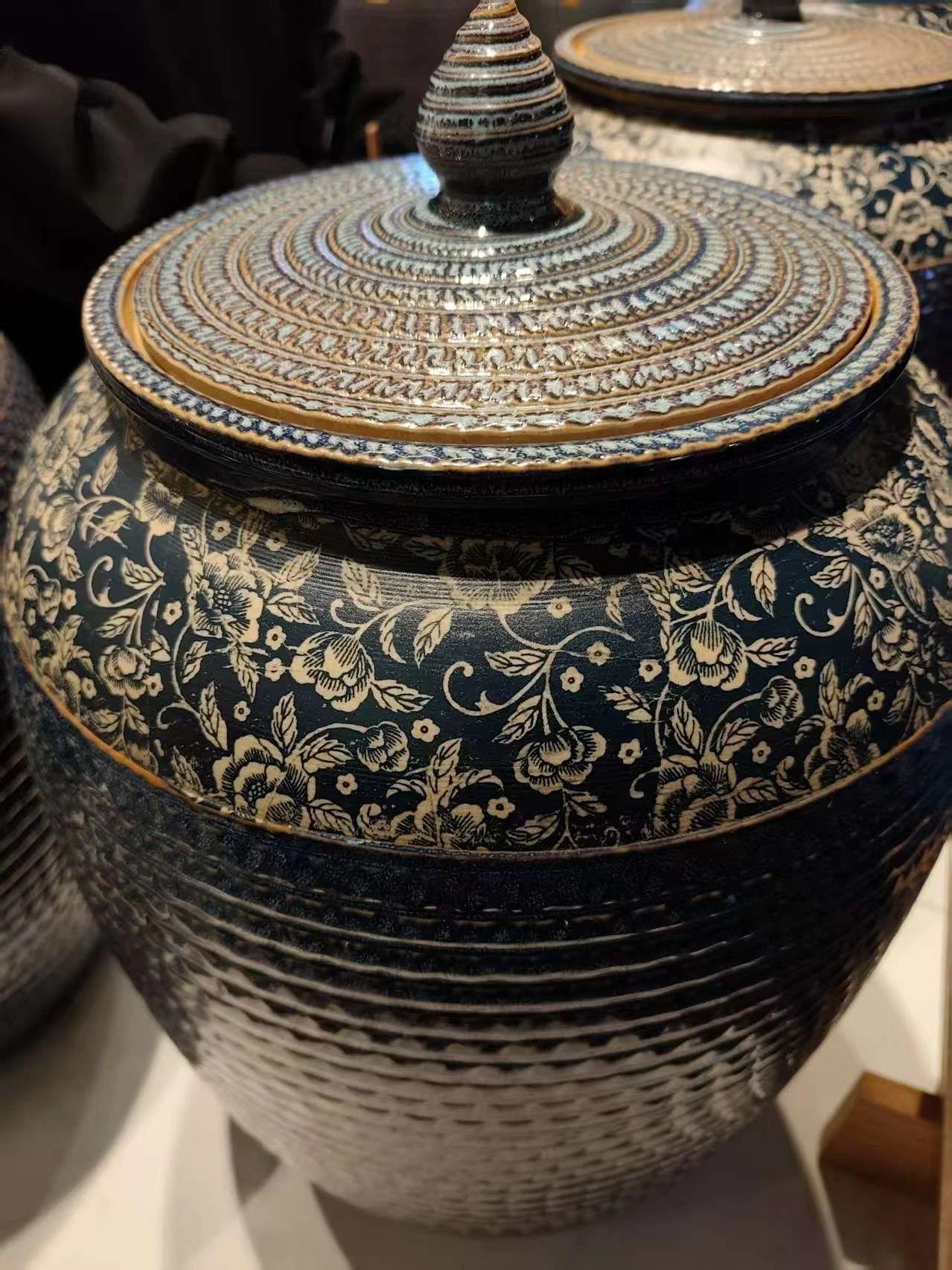 这件陶瓷作品的设计精致,充满了传统的艺术气息。为了提升其艺术性,可以考虑在罐身的花纹中加入一些现代元素,如几何图案或者抽象图形,以创造一种古今融合的感觉。同时,可以尝试使用不同的釉色来赋予作品更多的色彩层次,使其在视觉上更加丰富。在展示方面,可以将其置于一个具有现代感的展示空间中,以对比和突出其经典设计,从而产生更强烈的视觉冲击和情感共鸣。