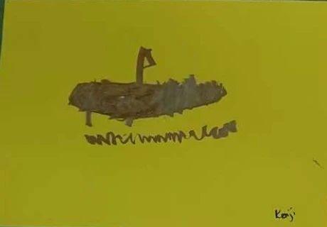 这幅由孩子创作的画作,以其明亮的颜色和简洁的构图,展示了纯真和直接的美感。作品中的鸭子以棕色呈现,置于明亮的黄色背景之上,形成鲜明的对比,给人一种活泼的视觉体验。这种风格常见于儿童艺术中,强调简单的形状和鲜艳的色彩,以直接的方式表达情感和想象力。