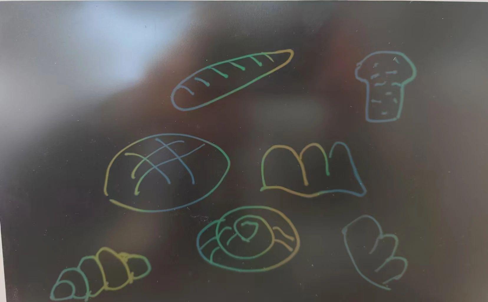 这幅简单的面包涂鸦作品用色活泼,形状多样,富有童趣。可以考虑在作品中加入更多的细节,比如面包上的纹理和阴影,增强立体感。同时,可在背景中添加一些相关的元素,如面包烤箱、餐桌等,使其更具有生活气息。此外,加入一些互动元素,如面包烘焙的过程或人物角色,能够增加作品的故事性和吸引力。这将使作品更具深度和丰富性,能够引发观者的想象力和共鸣。