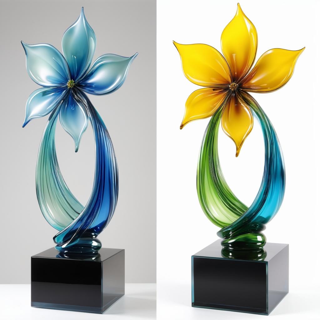 将这幅手绘图转换为雕塑设计时,可以考虑使用透明或半透明的材质(如玻璃或树脂),以展现色彩渐变的效果。花瓣的形状可以被雕刻成曲线优美的立体形态,利用光线穿透材质,增强视觉层次感和空间表现力。雕塑基座可以设计成简约的圆形,以保证整体构图的平衡和稳定性。通过材质和色彩的结合,雕塑将呈现出生命的活力和细腻的自然美感。