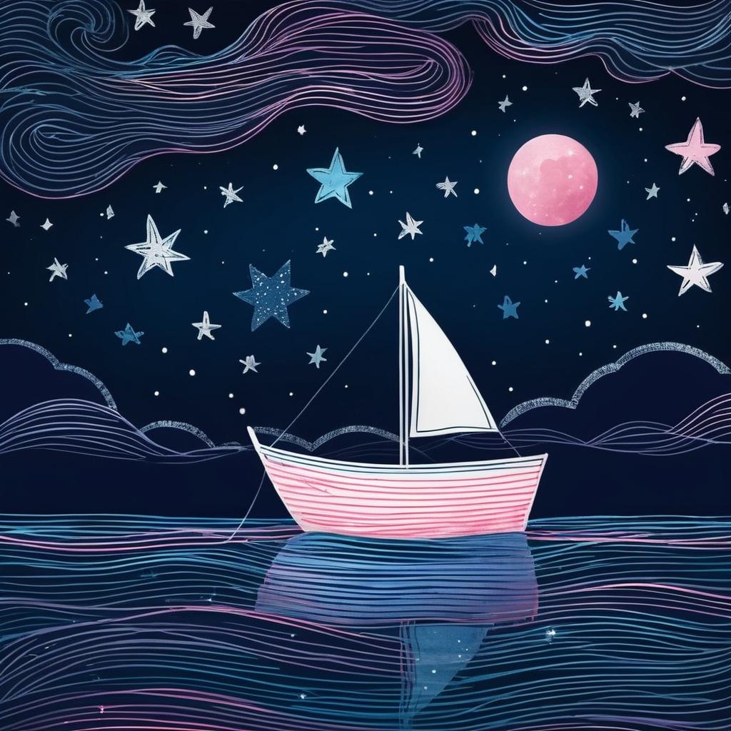 在这幅作品中,我们看到的是一幅充满童趣的夜航图。简单的线条勾勒出一艘在夜空下的小船,星星和月亮作为背景,构成了一幅宁静的画面。这种简单的表达方式常常能抓住观者的心,因为它唤起了我们内心深处的纯真和幻想。通过使用柔和的蓝色在粉色纸上创作,艺术家成功地营造了一种温柔而梦幻的氛围。这种色彩搭配不仅吸引眼球,还为作品增添了一层情感深度。为了让作品更具表现力,可以考虑加入更多细节,比如波浪的动态效果和星空的细腻刻画。这样的细节会让作品更具层次感,同时也能更好地传达出夜空的神秘和自由漂流的乐趣。此外,尝试使用不同材质的纸张,或者在作品中加入渐变色,也能为作品增添视觉冲击力。在儿童艺术创作中,这种简单而富有想象力的表达方式,不仅仅是艺术技巧的展示,也是一种心灵的交流和情感的传递。