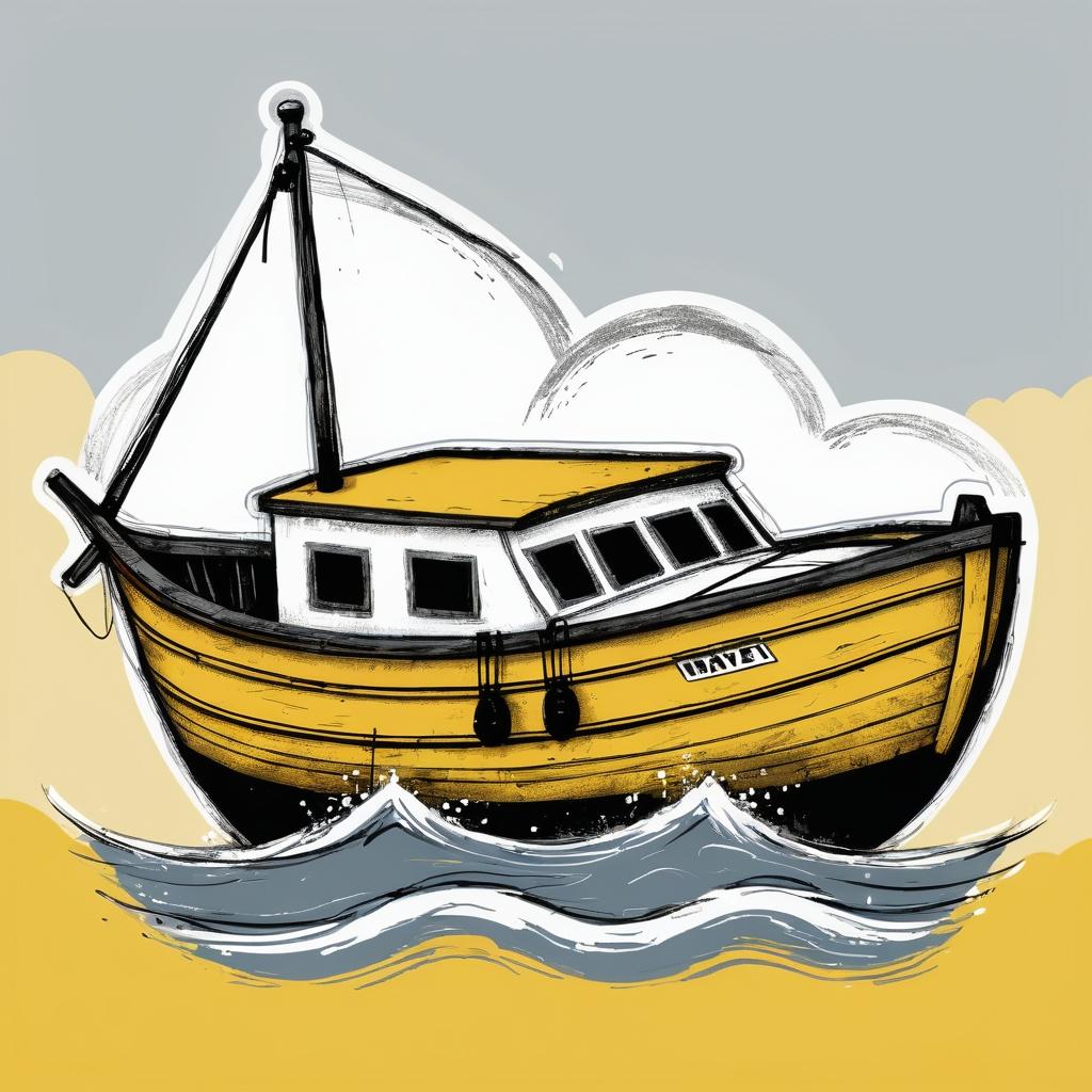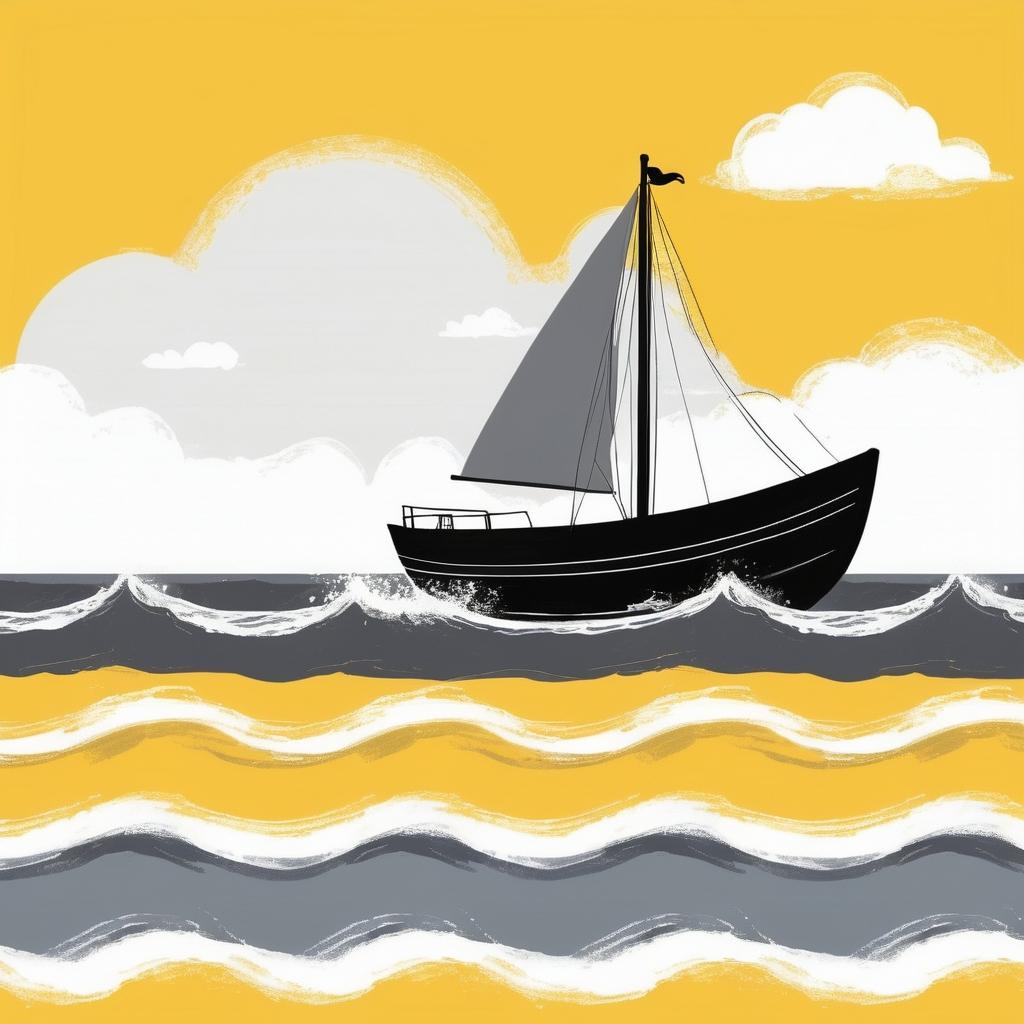 这幅作品以其简洁的构图和鲜明的色彩对比,展现了儿童艺术中常见的纯真与想象力。中央的船形象以棕色和灰色为主,简单却充满了探索的意味。黄色背景传达了一种温暖和活力,同时也为船的航行提供了一个明亮的舞台。下方的波浪状线条为画面增添了动感,仿佛船正在水面上轻轻摇曳。这种表达方式让人们感受到一种无拘无束的自由和对未知的好奇。在提升这幅作品的过程中,可以考虑加入更多背景元素,如天空、云朵或海洋,以增强画面的深度和故事性。这将使观众更容易投入到画面的情境中,感受到航行的乐趣。此外,丰富船的颜色和细节,如添加旗帜或人物,将使作品更具活力和互动性。尽管如此,保持作品的简约风格仍然是关键,以保留其原有的童趣和纯真。