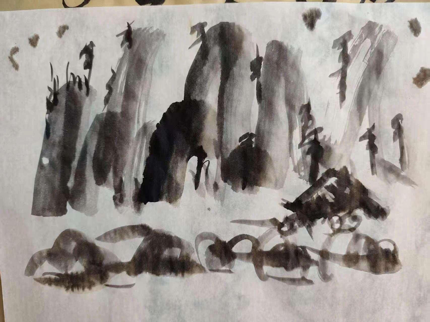 这幅作品通过简约的笔触展现了山水的意境,具有强烈的东方美学特征。创作者巧妙地利用了留白,使观者能够感受到空间的广阔和无尽的想象。建议可以在画面中加入更多层次的山峦,增强纵深感,同时通过不同浓淡的墨色,增添画面的细腻变化。这样不仅可以丰富视觉体验,还能更好地传达山水的灵动与生机。在极简的基础上,适度增加细节描绘,将使作品更具艺术张力和情感共鸣。