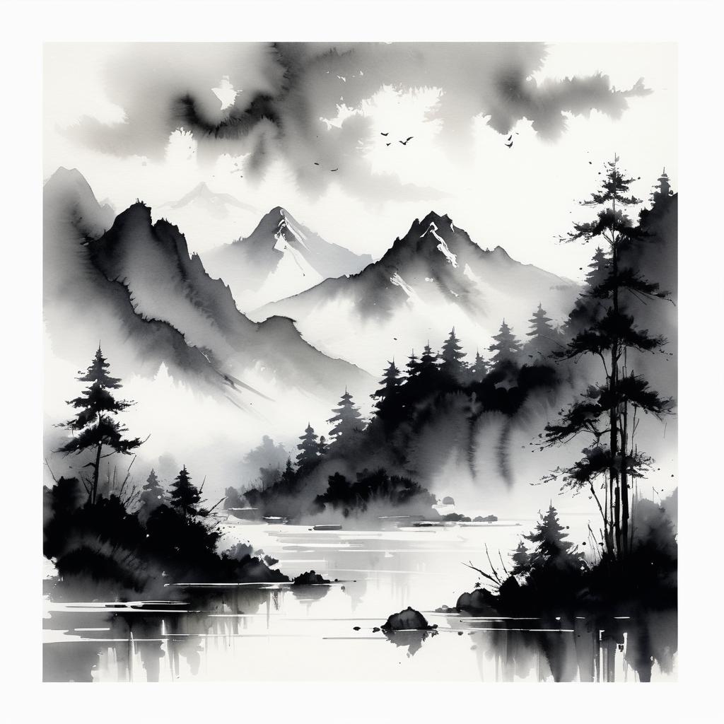 在提升作品的过程中,可以考虑增加山峦的层次感,通过不同的墨色浓淡变化,增强画面的细腻和生动。此外,适度增加树木的细节描绘,不仅可以丰富视觉内容,还能让观者更深入地感受到自然的生命力和灵动。这种细致而不失简约的创作方式,将使作品在东方艺术领域中更具辨识度和情感共鸣。