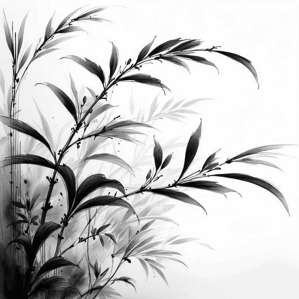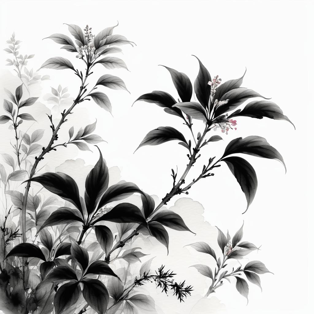 这幅作品以传统水墨技法展现,巧妙地运用浓淡交错的墨色,呈现出植物的自然形态和内在生命力。为了提升作品的艺术性,可以在背景上加入一些淡雅的色彩晕染,模拟晨曦或夕阳的光影效果,增加画面的层次感。此外,可以尝试将植物的细节刻画得更为精细,如叶片的纹理或花瓣的质感,使其在保持水墨简约美的同时,增添视觉焦点和观赏趣味。这样不仅能丰富作品的视觉效果,还能更深刻地传达出对自然的细腻观察与感悟。